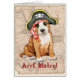 Arrf, ye matey! ! Send greetings to fellow pirates and sea dogs with a card of a cute Staffordshire Bull Terrier pup wearing a pirate hat and bandana on an old map background. Great design to appeal to all Pirate and Stafford lovers on land and sea alike.