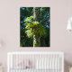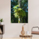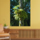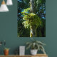 Staghorn fern growing on the trunk of a palm tree with a schefflera growing out of the staghorn fern at Tantalus, Oahu, Hawaii.