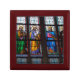 This product is made with beautiful mahogany wood, the inside is lined with white satin. The hinges are very sturdy and keeps a tight close on the box. The pattern tile is wonderful It's truly is an exquisite product. This is a gift for anyone and for any occasion. A fine wooden piece to display on your furniture anywhere in your home. The printing accented the design on the box very well. Very pleased with the Font.