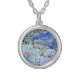 Stained glass abstract art blues lavender silver plated necklace