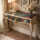 I had a small table I had just painted and wanted to add a bit of a romantic touch. This paper decoupaged on the top was just what it needed it always elicits oohs and aahs.