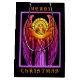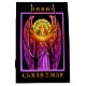 A dramatic stained glass angel, in vibrant jewel colors with a golden halo, announcing the advent of Christmas.