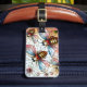 Whimsical bees with elegant colored out stretched wings that embody the look of reflective stain glass panes on a backdrop of variations of color and playful pattern on a ready to personalize luggage tag. Add this charming nature design to your bags. Shades of blue, pink, and warm golden tones add depth and a touch of texture to this design.