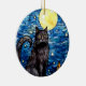 Stained Glass Black Cat Starry Night Ceramic Ornament