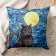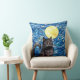 Stained Glass Black Cat Starry Night Throw Pillow