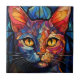 Experience the vibrant charm of a stained glass cat illustration, with its colorful hues of orange, blue, and purple.