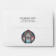 Complete your holiday stationery with this stained glass Christmas envelope featuring a glowing cathedral window design. The colorful liner brings the look of stained glass artistry to life, while the matching circular window seal on the flap adds an elegant finishing detail. Perfectly coordinated to pair with stained glass holiday cards, party invitations, wedding stationery, or baptism announcements, this envelope adds a meaningful and artistic touch to your festive correspondence. Fully customizable to complement your chosen event.