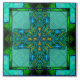 Stained Glass Celtic Cross in Gold and Green Ceramic Tile