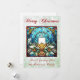 Stained Glass Christmas Candle Holly Green Glitter Holiday Card