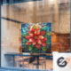 Stained Glass Christmas Flower red Poinsettia Window Cling