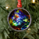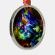 Stained Glass Ornament contains bright vivid colors like royal blue, red, purple, gold, chartreuse, orange, and brown.