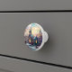 A charming ceramic knob with an image of a winter church in stained glass style.