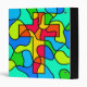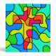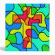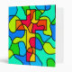 Simple illustration of a colourful cross symbol designed in the style of a stained glass church window. Image available on various gifts and products.