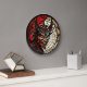 The clock features a mesmerizing stained glass devil head printed on its surface, giving it a unique and intriguing look. The intricate details of the devil's head are beautifully captured in vivid shades of red and black, creating a visually stunning centerpiece for any wall.