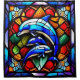 Transform your bathroom into a vibrant oasis with this stunning Shower Curtain, featuring a beautifully designed stained glass Dolphin's motif.