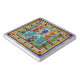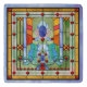 6" x 6" ceramic trivet with an image of a stained glass fantasy created with red, orange, yellow, green, blue, aqua and pink stained glass with a floral design, dotted with luminous green orbs and deep red crystal orbs. See matching candy jar, espresso cup, flask, mug, paper plate, square ceramic tile and coasters. See the entire This & That Trivet collection in the HOME section.