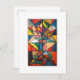 This postcard showcases a vibrant bouquet in a stained-glass–inspired style. Bold outlines and gentle curves divide the design into rich segments of magenta, purple, yellow, green, red, and soft blue. Layered textures add depth, while playful white splatters create a fresh, light-filled effect. A cheerful design to send as a thoughtful note or keep as a small piece of art.
