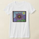 Northwest Cosmos Dahlia stained glass flower T-shirt. Surrounded by textured Stained Glass sky, sun, ocean, and grass.