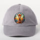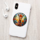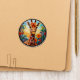Colorful round iron on patch features a round AI-generated giraffe and floral portrait in stained glass. Great for jackets, hats, backpacks and more.