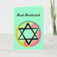 The "Star of David" represents the Jewish Holiday "Rosh Hashanah" This design is of a black star on a circle of a series of different colors that resemble a stained glass window. Inside is a wish for having a happy and healthy new year.