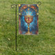 Create an enchanting addition to any garden with this exquisite stained glass window-inspired garden flag. Featuring a prominent Holy Grail at the center, the flag is adorned with lush green foliage, set against a richly textured background that mimics the luminous quality of real glass.