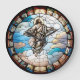 Introducing our beautifully crafted round clock with a stained glass Jesus head printed on it! This unique timepiece is perfect for anyone looking to add a touch of elegance and spirituality to their home or office decor. The clock face features a stunning stained glass design of Jesus' head, which is both eye-catching and inspiring. The intricate details and vibrant colors of the stained glass create a mesmerizing effect that is sure to captivate anyone who sees it. This clock has a minimalist design with no numerals, allowing the focus to remain on the stunning stained glass artwork. The clock hands are easy to read and perfectly complement the overall design of the clock. The clock face is made of high-quality materials that are durable and long-lasting, ensuring that it will remain a cherished piece of decor for years to come. The clock is also easy to hang and operate, making it a hassle-free addition to any room. Whether you're looking for a beautiful clock to add to your collection or a meaningful gift for a loved one, this round clock with a stained glass Jesus head printed on it is sure to impress. Don't miss out on this unique and inspiring piece of art that doubles as a practical timepiece!