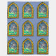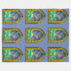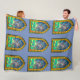A blanket featuring a kraken done in the style of a medieval stained glass window. The design is on a transparent background so that the buyer can pick a background color that best suits their needs.