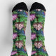 Beautiful pair of crew socks with a seamless lotus pattern in stained glass style.