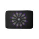A lovely stained glass pattern adorns this bath mat in dominant colors of purple, blue, yellow and black. Twelve abstract feathers circle a central mask to form a spiritual mandala design with a Native American sensibility.