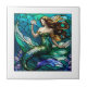 Stained glass mermaid admiring a flower ceramic tile