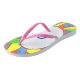 You can personalized these flipflops with a monogram in each foot bed. The design under the heel and the toe areas is a bright mosaic painting to look like stained glass. It's a unique and colorful design.
