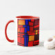 White and red 11 oz. combo mug with an image of a red, blue orange and yellow stained glass mosaic. See matching espresso cup, candy jar, flask, paper plate, square ceramic tile, square trivet and coasters. See the entire This & That Mug collection in the HOME section.