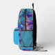 Your child will be the envy of all their friends with this brightly colored stained glass backpack. The background is done in turquoise with their name on it in an elegant script. The front pocket and the sides at the bottom are done in turquoise blue. The rest of the backpack is done in a vibrant colored stained glass pattern in dark blue, turquoise, light pink, dark pink and purple. Truly a unique, beautiful backpack that they will want to use year after year!