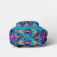 Your child will be the envy of all their friends with this brightly colored stained glass backpack. The background is done in turquoise with their name on it in an elegant script. The front pocket and the sides going all around are done in a vibrant colored stained glass pattern in dark blue, turquoise, light pink, dark pink and purple. Truly a unique, beautiful backpack that they will want to use year after year!