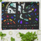 A kitchen towel that features a stained glass Pegasus design.