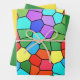 Colorful mosaic rainbow designed wrapping paper sheets using blue, green, yellow and purple.
