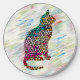 My original digital art of a cat silhouette is featured on this cool charger, processed in a stained glass and colorful style. The cat is silhouetted against a distressed colorful background in complementary color tones. The artwork is protected by an acrylic plate so the colorful tones will always stand out. This includes a cable and is compatible with most phones; see compatibility below on Zazzle’s product info. Makes a great gift for anyone, especially a cat lady or cat lover!