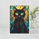 Stained Glass Style Charming Black Cat Green Eyes Card