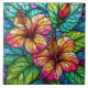 Stained glass style hibiscus ceramic tile