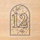 Faux Stained Glass Style Table Number Twelve. Please note: This is a stained-glass inspired printed design, not real stained glass. Modern stained-glass inspired table number 12, featuring bold cathedral-style leading lines in a clean, minimalist layout. Line colour and background can be customised to match your wedding palette. Printed on clear acrylic. Sold as individual table numbers, as the table number within the design is non-editable. Perfect for modern, minimalist, black-and-white, or cathedral-inspired weddings.