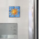 Beautiful digitally created stained glass sun in warm oranges and gold against a blue sky. Add a touch of beauty to your fridge.