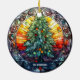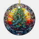 Stained Glass Sunset Christmas Tree Custom Name Ceramic Ornament