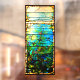 An art nouveau era stained glass tiffany look window cling of starfish. Four seasons, under the sea . In colors of blue, teal, gold and brown. An elegant vintage design.