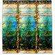 An art nouveau era stained glass window of starfish under the sea by tiffany. In colors of blue, teal, gold and brown. An elegant vintage design.
