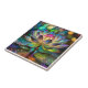 Stained Glass Vibrant Lotus Flower Ceramic Tile