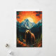 Stained Glass Wildlife Mountain Sunset Bear Holiday Card