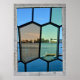Beautiful stained glass window viewing at sea coast. Relaxing and wonderful poster for your home and office!
