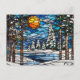 Stained Glass Winter Forest Landscape Holiday Postcard