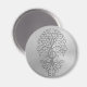 This tribal tree that features a treble clef in the center has the appearance of being engraved into a steel background. Swirling braches stretch out from the musical symbol with large roots growing out of the bottom. Metallic textures and a silver color give the magnet the look of being made out of stainless steel. This symmetrical pattern is a stunning combination of music and nature.
