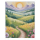 A vibrant and uplifting watercolor painting featuring a winding dirt path through a lush meadow bursting with colorful wildflowers in pink, purple, and yellow. Rolling green hills lead to layered mountains under a dramatic golden sunrise with radiant concentric rays. Dark pine forests frame the scene, creating a sense of peace, hope, and natural beauty—perfect for posters, canvas prints, and inspirational home decor.